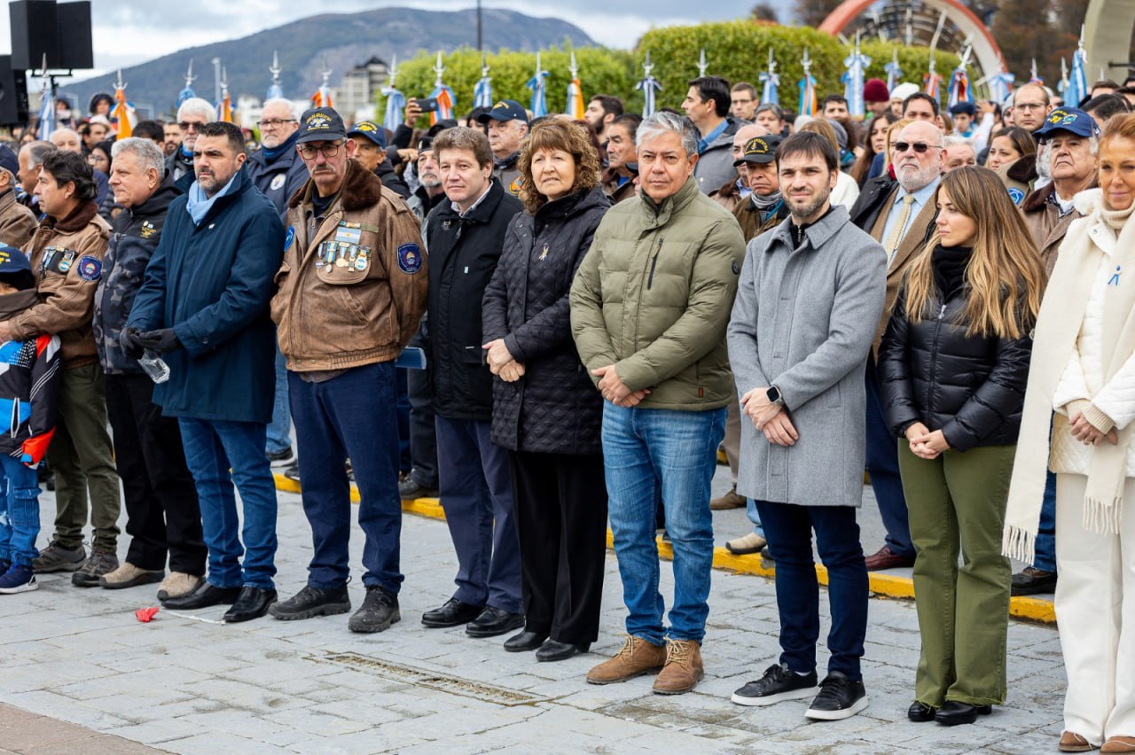 Durante la ceremonia se dirigieron a los presentes el Veterano de Guerra Carlos Parodi, el Intendente de Ushuaia, Walter Vuoto, el Gobernador Gustavo Melella y también dieron un mensaje el Gobernador de Chubut, Ignacio Agustín Torres y el Gobernador de Neuquén, Rolando Figueroa. Luego, las autoridades presentes colocaron ofrendas florales en el Monumento Héroes de Malvinas y se realizó un minuto de silencio en memoria de los caídos. Concluido la ceremonia oficial, el Gobernador Melella subrayó que “hoy es un día de reflexión profunda, primero en memoria de los que dejaron su vida, que fallecieron en combate o luego del combate, y después es un momento de tomar conciencia de que Malvinas es una causa que es de todos los días y que es permanente”.
