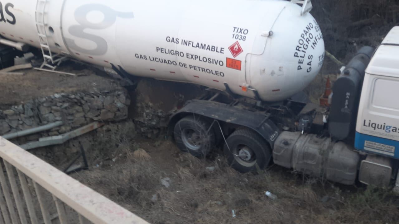 El accidente involucró a un camión semirremolque transportador de gas, también se informó que el chofer resultó Ileso, sin necesidad de traslado hospitalario.