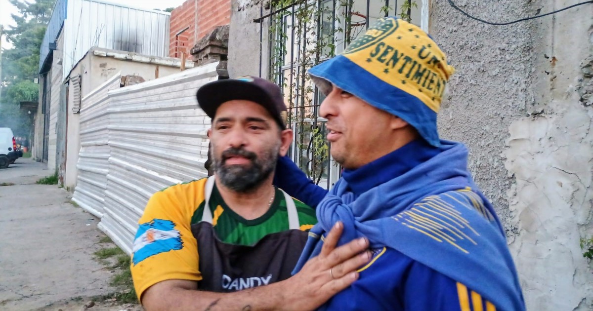 Hinchas de ambas parcialidades compartieron un momento antes de ingresar al estadio en Varela....