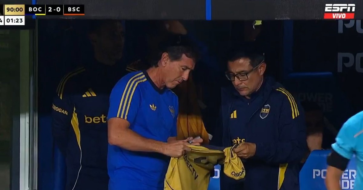 Cerca del final, al DT le tiraron una camiseta desde la platea y clavó su autógrafo. ...