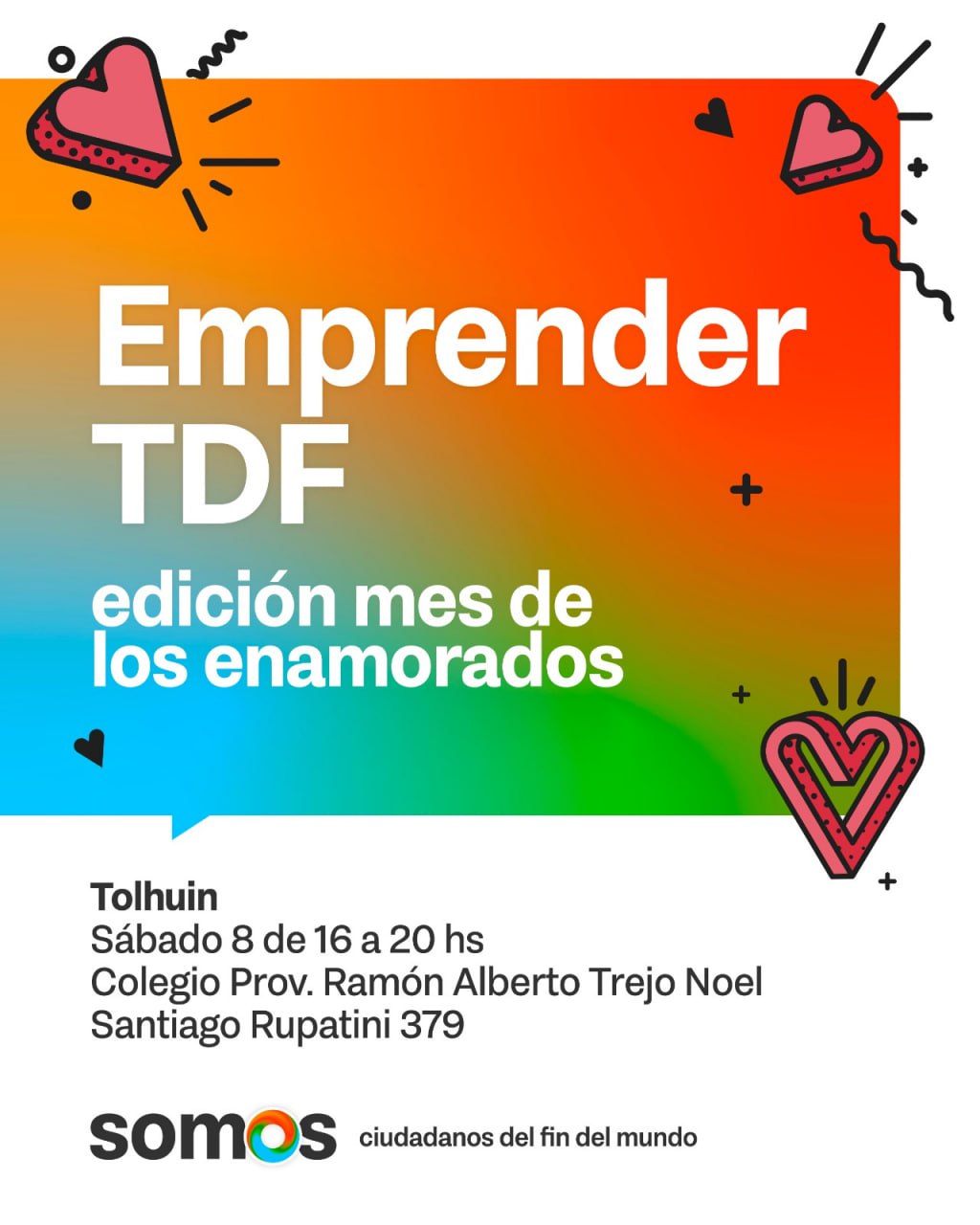 El Gobierno de la Provincia, a través de la Secretaría de Economía Popular dependiente del Ministerio de Economía, llevará adelante el primer encuentro del año “Emprender TDF” edición “Mes de los Enamorados”. El evento se realizará este sábado 8 de febrero de 16 a 20 horas en el Colegio Provincial Ramón Alberto Trejo Noel, ubicado en Santiago Rupatini 379 de la ciudad de Tolhuin.