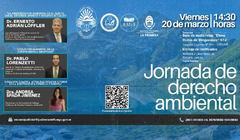 USHUAIA.- El Derecho Ambiental será eje de una jornada académica que reunirá en Ushuaia a destacados referentes del ámbito judicial y universitario.